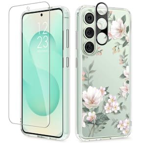CapaGVIEWIN Capa para Samsung Galaxy S25 Plus com protetor de tela e protetor de lente de câmera, [não amarela] Capa de telefone feminina transparente floral rígida à prova de choque para S25 Plus de 6,7 polegadas (magnólia/branca) - Compatibilidade: esta capa é compatível apenas com Samsung Galaxy S25 Plus (6,7 polegadas, versão 2025); alinhamento preciso permite fácil acesso aos botões, alto-falantes e porta de carregamento; o pacote inclui uma capa floral transparente, 1 película de vidro temperado, 1 protetor de lente; confirme o modelo antes de fazer o pedido (veja a imagem 2) - Padrões florais claros e chiques: a capa apresenta estampas florais elegantes que dão ao seu telefone uma aparência única e atraente; o design transparente mostra a beleza autêntico do seu dispositivo; Criado com tecnologia de impressão avançada, o padrão permanece vibrante e resistente ao desbotamento ao longo do tempo - Proteção de nível militar 3 em 1 de 360°: composta por uma parte traseira rígida de policarbonato e uma moldura de TPU macio, esta capa absorve choques e resiste a quedas de até 3 metros; as molduras elevadas protegem a tela e a lente da câmera de arranhões; inclui um protetor de tela de vidro temperado 9H e um protetor de lente de câmera para fornecer proteção abrangente para o seu telefone - Aderência segura e não amarela: Feita com materiais premium e revestimento antiamarelamento aprimorado, esta capa resiste ao suor, raios UV e manchas que podem manter a clareza durante o uso; seu design fino e leve e borda de TPU macio fornecem uma aderência segura e uso adequado para o bolso - Suporte confiável: suporta carregamento sem fio e é compatível com a maioria dos acessórios de telefone, como suportes de anel e suportes de carro; Para qualquer problema, como incompatibilidade de modelo ou expectativas não atendidas, através do Centro de mensagens da Amazon para assistência imediata
