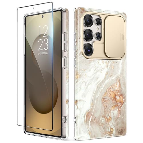 CapaCapa compatível com Samsung Galaxy S25 Ultra com capa de câmera deslizante, com protetor de tela, proteção contra quedas de grau militar à prova de choque, mármore, slim fit, capa rígida para celular de policarbonato de 6,9 polegadas, versão 2025 - Compatibilidade: a capa de celular GVEIWIN é compatível APENAS com Samsung Galaxy S25 Ultra (6,9 polegadas, versão 2025). Certifique-se de ter o modelo de telefone correto antes de fazer o pedido. Role para baixo para ver como verificar o modelo do seu telefone. Para o melhor desempenho da tela sensível ao toque, registre novamente sua impressão digital depois de aplicar o protetor de tela de vidro temperado incluído. - Capa de câmera deslizante atualizada: a capa de câmera deslizante resistente e a moldura elevada ao redor da câmera protegem a lente de arranhões, poeira e sujeira, mantendo a qualidade da foto. A faixa ranhurada é projetada para uma experiência de deslizamento mais suave, o que facilita o uso e a ocultação da câmera. Desfrute de fotografias sem preocupações enquanto mantém sua câmera segura e impecável. - Proteção contra quedas e choques: a capa de telefone é feita de uma parte traseira de policarbonato rígido e laterais de TPU macio para excelente proteção contra quedas, impactos e choques, que absorve o choque de quedas acidentais e minimiza danos. Um protetor de tela de vidro temperado está incluído para melhor proteção da tela. Protege seu telefone, prolonga sua vida útil e dá a você tranquilidade durante o uso diário. - Designs elegantes e vibrantes: as capas GVIEWIN não apenas fornecem proteção, mas também elevam a beleza do seu dispositivo. Os padrões modernos de mármore e as cores vibrantes não desbotam facilmente. O visual elegante da capa torna seu telefone uma declaração de moda que complementa seu estilo de vida, permitindo que você mostre seu estilo único onde quer que vá. - Recortes precisos: a capa 25 Ultra é construída com recortes precisos para fácil acesso à porta de carregamento, lente, botões de energia e volume e outros recursos. Compatível com carregadores sem fio, suportes e suportes de carro. Atende às suas várias necessidades. Se você tiver algum problema, via Amazon.
