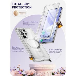 Capai-Blason Capa transparente para Samsung Galaxy S25 Ultra MagSafe com protetor de tela integrado [suporta identificação de impressão digital e carregador sem fio] Capa de telefone magnética de corpo inteiro e fina