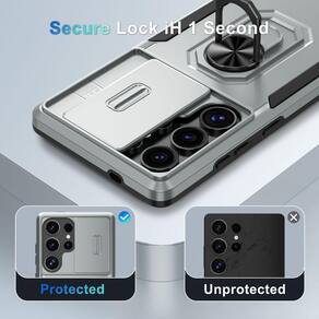 Capa Janmitta compatível com Samsung Galaxy S25 Ultra embutida, capa de lente de câmera deslizante, protetor de tela e suporte de anel, capa de telefone de corpo inteiro resistente à prova de choque, cinza 2025