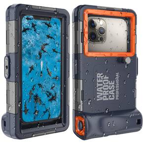 Capa de telefone para mergulho subaquático com snorkel para telefone 16/15/14/13/12/11 Pro Max/XR/XS/X Galaxy S24/S23/S22. [50 pés/15 m] Capa impermeável profissional para mergulho com vídeo fotográfico subaquático(azul)