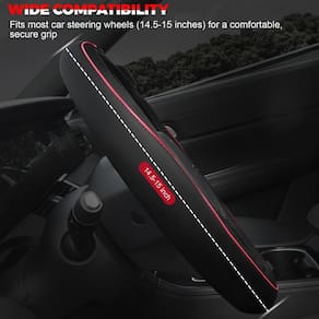 2 - Couro de microfibra de alta qualidade: Feita com uma fina camada externa de couro de microfibra, esta capa de volante apresenta costura meticulosa e costuras reforçadas. O couro durável e resistente ao desgaste garante uma longa vida útil, resistindo ao uso diário. O elegante design vermelho simplificado contra um fundo preto adiciona um toque de cor impressionante, tornando o interior do seu carro elegante e exclusivo. - Ajuste perfeito para volantes padrão: projetada para caber em volantes padrão com um diâmetro de 37 a 39 cm de diâmetro, esta capa de volante oferece um ajuste confortável como uma luva. Garanta a combinação ideal medindo seu volante antes de comprar para o melhor ajuste e conforto possíveis. - Design durável e protetor: o lado interno é feito de borracha com um forro antiderrapante, esta capa de volante oferece excelente aderência e estabilidade. Protege seu volante contra danos causados pelo sol, altas temperaturas e arranhões, garantindo proteção duradoura. A capa também evita suor nas mãos, oferecendo uma sensação confortável e segura, para que você possa dirigir com confiança e facilidade. - Fácil instalação com dicas úteis: para uma instalação mais suave e eficaz, recomendamos aquecer a capa do volante sob o sol ou usar um secador de cabelo antes de seguir nosso guia passo a passo. Nossa capa de volante pode ser facilmente instalada em apenas três etapas: basta colocar a capa sobre a parte superior do volante, puxá-la para baixo para cobrir toda a roda e ajustá-la para um ajuste confortável e seguro. Este processo simples garante um ajuste perfeito e firme com o mínimo de esforço. - Além disso, esta capa de volante é à prova d'água, o que a torna incrivelmente fácil de manter. Basta limpar com um pano úmido para remover sujeira e sujeira. Quando você receber a mercadoria, se houver algum problema, e não abra a disputa diretamente. Prometemos que lhe daremos uma solução satisfatória após a confirmação.