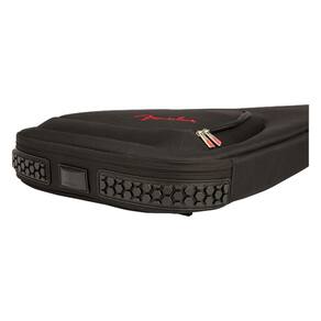 A gig bag da série F620 da Fender é uma maneira elegante e segura de manter seu baixo elétrico seguro durante a viagem. Apresentando o icônico formato assimétrico da Fender, sua camada externa durável é construída em poliéster resistente 600 Denier que protege contra impactos, evitando rasgos e rompimentos. Seu interior é preenchido com acolchoamento de 20 mm forrado com microfibra de toque suave que mantém seu instrumento seguro, evitando danos ao acabamento. Ele ainda vem com proteção de botão de alça, um apoio de pescoço protetor e amortecedores externos para minimizar qualquer tensão no instrumento durante o transporte. A gig bag F620 também vem com uma alça super acolchoada e alças de mochila ergonômicas de malha de ar com fivelas de trava de escada facilmente ajustáveis, para que você possa carregar seu instrumento confortavelmente sem esforço físico desnecessário. Além disso, possui bastante espaço de armazenamento com seu grande bolso frontal e bolso de alça de mochila com zíper. O bolso de armazenamento frontal oferece espaço para pequenos acessórios e tem um bolso dedicado para cordas extras, uma bolsa de ferramentas acolchoada removível, bolso elástico para palheta, presilha elástica para caneta e uma janela para cartão de visita.