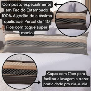 A Capa de Xuxão é o acessório perfeito para elevar o conforto do seu travesseiro de corpo. Disponível em estampas elegantes, esta capa avulsa de 1,45 metros por 45 centímetros é feita de percal 140 fios, oferecendo um toque suave e macio que transformará suas noites de sono. Fabricada com 100% de algodão de alta qualidade, a capa não apenas aprimora o seu conforto, mas também proporciona durabilidade e fácil manutenção, pois contém zíper para facilitar a montagem e retirada para lavagem. Experimente o aconchego e a sofisticação desta capa e desfrute de noites de sono tranquilas e revigorantes. Confira!