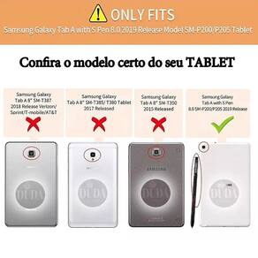 Descrição Capa Case para Samsung Galaxy Tab sm-P200 P205 Capa Agenda para Tablet Samsung Galaxy Tab A 8.0 S