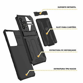 DESCRIÇÃOUse a melhor capa para Samsung Galaxy A73 5GA Capa Guardian da Gorila Shield para Samsung Galaxy A73 5G, foi desenvolvida para proteger seu aparelho, com a mais alta tecnologia de absorção de impactos, garantindo extrema segurança. Fabricado com um design leve e fino, mas sem perder a segurança de proteção para seu celular. A Capa Guardian tem um encaixe perfeito para adaptar-se totalmente ao seu aparelho, deixando os botões livres. Possui uma alça Kickstand, que permite utilizar o celular apoiado na horizontal. Além disso, a capa Guardian oferece um compartimento exclusivo para guardar seus cartões. Confira seu modelo antes de finalizar a compraESPECIFICAÇÕESMaterial: Polipropileno de alta densidade - Não Amarela. Marca: GshieldDimensões: Dimensões exatas do aparelhoProteção: Contra impactos e riscos à telaCertificações: Us MilitaryPeso: 10G