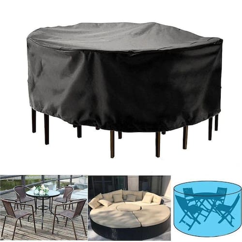 Tecido de Bagun impermeável, protege os móveis da erosão da chuva. Tecido resistente ao desbotamento pelo sol, torna o produto durável, resistente e de longa duração. Protege o seu mobiliário de jardim da chuva, neve, geada, fezes de pássaros, sujeira, poeira. Aplicável a todos os tipos de móveis de exterior, cadeiras, bancos, mesa de centro, conjunto de móveis de vime, etc.