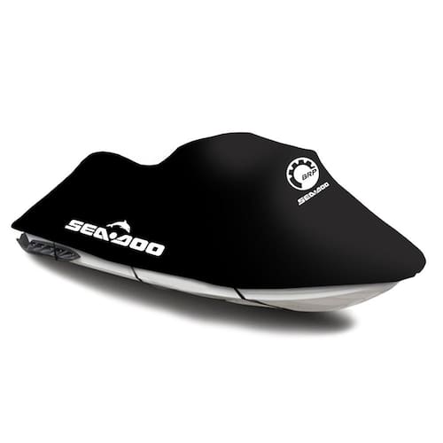detalhes confeccionada em material de suplex preto oferece proteção contra poeira e arranhões possui elástico na barra para melhor ajuste possui logo brp na frente e logo sea doo nas laterais
