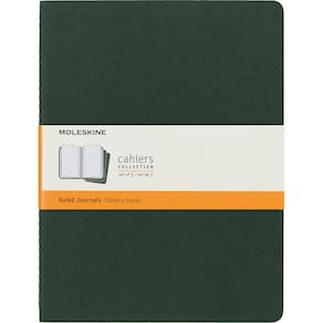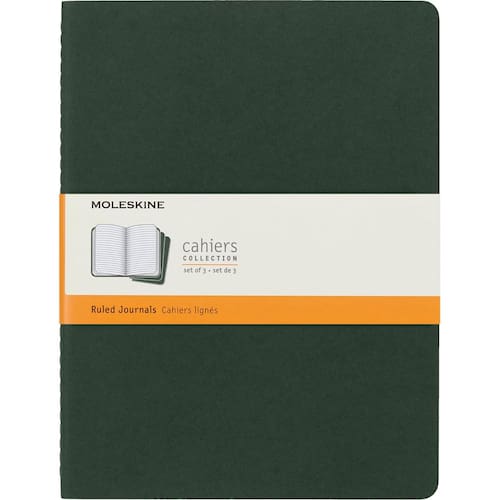 Moleskine Diário Cahier, capa macia, GG (19 cm x 24 cm) pautado/forrado, verde murta, 120 páginas (conjunto com 3) - MOLESKINE CAHIER: Este diário pautado de 19 x 24 cm tem uma capa de papelão flexível e resistente, um bolso para notas soltas e costura visível na lombada. As últimas 16 folhas são removíveis. - Design clássico: o Cahier Journal é um favorito entre os ávidos anotadores. Sua capa de papelão o torna ideal para personalização — escreva uma citação favorita, faça um esboço de um retrato ou simplesmente dê um nome. - Cadernos icônicos para cada finalidade: a história da icônica coleção de notebooks Moleskine se expandiu para incluir uma grande variedade de tamanhos e cores, texturas e layouts e até capas flexíveis. - MOLESKINE Versatilidade: escritores, estudantes, artistas, profissionais e viajantes adoram nossos cadernos, agendas, canetas, bolsas e acessórios. De diários a mochilas, há um produto Moleskine para você. - MOLESKINE Qualidade: dedicamo-nos à cultura, viagens, memória, imaginação e identidade pessoal — tanto física quanto digital. Trazemos esse compromisso para nossos cadernos, bolsas, aplicativos e canetas inteligentes e notebooks.
