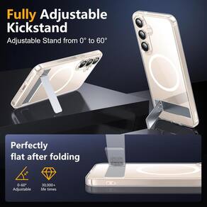 CapaSPIDERCASE Capa magnética para Samsung Galaxy S25 Plus, [3 formas de suporte] [proteção contra quedas de grau militar] com suporte invisível à prova de choque, capa fina para Samsung Galaxy S25 Plus de 6,7 polegadas, transparente - [Capa para S25 Plus] SPIDERCASE projetada para Samsung Galaxy S25 Plus 5G 6,7 polegadas, não serve para outros modelos, verifique o modelo do seu telefone antes de comprar. Recortes precisos e botões sensíveis garantem acesso mais fácil a todos os botões e funções. - [Suporte funcional e invisível] O suporte da capa para Samsung Galaxy S25 Plus é dobrável, resistente e construído para durar, com suporte prático integrado feito de alumínio de grau aeroespacial leve e sólido, oferecendo uma experiência robusta e flexível no modo retrato, paisagem ou teleconferência. Permite que você obtenha um ângulo de visualização mais confortável. Reduza a frequência de olhar para a tela do telefone para evitar machucar suas costas e pescoço. - [Magnético super forte] Com um anel magnético integrado que se alinha perfeitamente com carregadores magnéticos, esta capa oferece uma fixação mais forte e velocidade de carregamento mais rápida. Compatível com todos os acessórios magnéticos e carregadores sem fio (como carregador sem fio de carro, carregadores sem fio, carteiras magnéticas, etc.). - [À prova de choque de grau militar de 3,5 m] aprovado em testes militares de até 3 m, tem uma parte traseira escovada de policarbonato resistente e amortecedores de borracha flexível que fornecem forte amortecimento para quedas diárias. Airbag poderoso de dispersão de impacto em 360° integrado e tecnologia de canto resistente a impactos de 4 cantos. O design pequeno de bordas de 1,5 mm sobre a câmera e molduras de 1,5 mm sobre a tela evitam poeira e arranhões. - [Design fino e aderência confortável] Esta capa fina para Samsung Galaxy S25 Plus traz maior portabilidade e aderência mais firme, fácil de manter limpa, anti-impressões digitais e traz a sensação excepcional de toque sedoso, sem volume e sem derrapagem para caber facilmente no bolso.