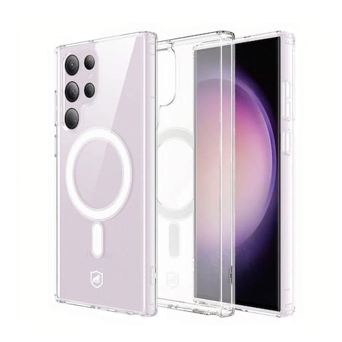 A Capa MagSafe Transparente para Samsung Galaxy S23 Ultra, da Gshield, foi projetada para dar mais segurança ao seu smartphone. Com imãs em anel integrados e alinhados perfeitamente com seu aparelho oferece um encaixe mais rápido e fácil na recarga sem fio, podendo manter a capa em seu aparelho durante o carregamento magsafe.