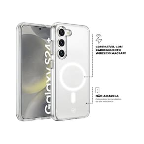 Use a melhor case para Samsung Galaxy S24 Plus A Capa MagSafe Transparente para Samsung Galaxy S24 Plus, da Gshield, foi projetada para dar mais segurança ao seu smartphone. Com imãs em anel integrados e alinhados perfeitamente com seu aparelho oferece um encaixe mais rápido e fácil na recarga sem fio, podendo manter a capa em seu aparelho durante o carregamento magsafe. Desenvolvida com a combinação de policarbonato transparente, ela se encaixa perfeitamente ao smartphone e todos os materiais e coberturas são tratados para não amarelarem com o tempo. A tecnologia MagSafe na capa forma um anel de ímãs na traseira do celular para se conectar por magnetismo aos carregadores sem fios. Antes existia o risco de o usuário posicionar o aparelho de forma errada na base carregadora; agora, o MagSafe garante que o aparelho será sempre atraído para o ponto certo. Não compatível com uso de suporte magnético / Utilizar a placa para suporte magnetico poderá impossibilitar o carregamento Wireless OBS: O smartphone quando superaquecido durante o uso e/ou carregamento, transmite um calor que provoca uma reação química do material da capa que pode ocasionar uma aparência amarelada na mesma. Marca: Não Informado