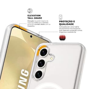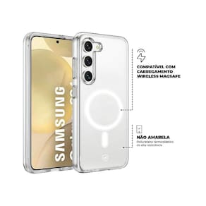 Capa Magsafe Para Samsung Galaxy S24 - Transparente - Gshield Use a melhor case para Samsung Galaxy S24 A Capa MagSafe Transparente para Samsung Galaxy S24, da Gshield, foi projetada para dar mais segurança ao seu smartphone. Com imãs em anel integrados e alinhados perfeitamente com seu aparelho oferece um encaixe mais rápido e fácil na recarga sem fio, podendo manter a capa em seu aparelho durante o carregamento magsafe. Desenvolvida com a combinação de policarbonato transparente, ela se encaixa perfeitamente ao smartphone e todos os materiais e coberturas são tratados para não amarelarem com o tempo. A tecnologia MagSafe na capa forma um anel de ímãs na traseira do celular para se conectar por magnetismo aos carregadores sem fios. Antes existia o risco de o usuário posicionar o aparelho de forma errada na base carregadora; agora, o MagSafe garante que o aparelho será sempre atraído para o ponto certo. Não compatível com uso de suporte magnético / Utilizar a placa para suporte magnetico poderá impossibilitar o carregamento Wireless OBS: O smartphone quando superaquecido durante o uso e/ou carregamento, transmite um calor que provoca uma reação química do material da capa que pode ocasionar uma aparência amarelada na mesma. COR: ÚNICA