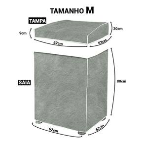 Dimensões: - Tampa: 0,62m (Largura) x 0,09m (A frente) x 0,20m (A trás) x 0,62m (Profundidade). - Saia: 0,62m (Largura) x 0,80m (Altura) x 0,62m (Profundidade). - Peso: Aprox. 400g