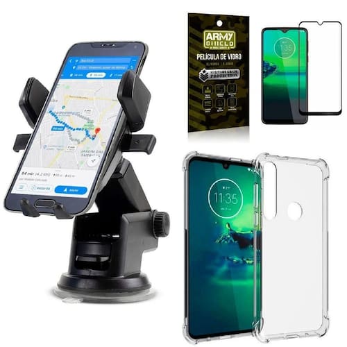 Suporte veicular automatic engate rápido + capinha anti impacto + película 3d - armyshield