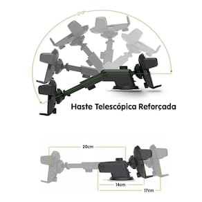 suporte veicular automatic engate rápido haste: retrátil de 10cm compatibilidade: com smartphones até 9cm de largura rotação: até 360
