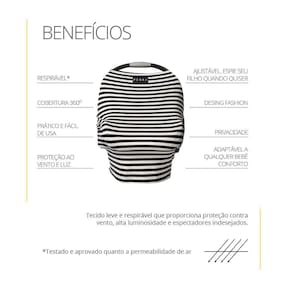 A capa Multifuncional tem como principal objetivo a proteção e o conforto do bebê. Sua cobertura 360 graus garante privacidade, tranquilidade, protegendo do vento, da luz excessiva e de superfícies não esterilizadas.
