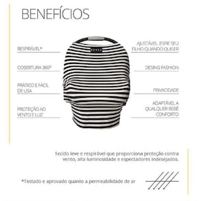 A Capa multifuncional Penka Cover foi desenvolvida para ser utilizada como um acessório versátil que facilita o dia-a-dia dos pais e a proteção do seu bebê. Moderna, funcional e fácil de usar pode ser utilizada desde o nascimento até aproximadamente os 3 anos de idade: Pode ser utilizada como capa interna ou externa para o bebê conforto, carrinho de bebê, moisés e utilitários. Também como capa de amamentação com 4 aplicações distintas, protetor para o carrinho de supermercado, cadeirão de alimentação de restaurantes, para cobrir o bebê e até mesmo como uma simples gola ou cachecol para a mãe; protege a criança contra luz solar excessiva, vento, sujeira e até mesmo de espectadores indesejados; oferece cobertura ajustável de até 360 graus tanto quando utilizada no bebê conforto quanto como capa de amamentação, garantindo total privacidade e tranquilidade; feita com matérias prima de excelente qualidade, proporcionando durabilidade, conforto e segurança com a ideal circulação de ar; sua elasticidade permite um ajuste personalizado para qualquer bebê conforto ou utilitário, e proporciona conforto enquanto utilizada como capa de amamentação;