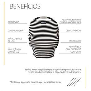 Capa Multifuncional Stripes Felix - PenkaA Capa multifuncional Penka Cover foi desenvolvida para ser utilizada como um acessório versátil que facilita o dia-a-dia dos pais e a proteção do seu bebê. Moderna, funcional e fácil de usar pode ser utilizada desde o nascimento até aproximadamente os 3 anos de idade: Pode ser utilizada como capa interna ou externa para o bebê conforto, carrinho de bebê, moisés e utilitários. Também como capa de amamentação com 4 aplicações distintas, protetor para o carrinho de supermercado, cadeirão de alimentação de restaurantes, para cobrir o bebê e até mesmo como uma simples gola ou cachecol para a mãe; protege a criança contra luz solar excessiva, vento, sujeira e até mesmo de espectadores indesejados; oferece cobertura ajustável de até 360 graus tanto quando utilizada no bebê conforto quanto como capa de amamentação, garantindo total privacidade e tranquilidade; feita com matérias prima de excelente qualidade, proporcionando durabilidade, conforto e segurança com a ideal circulação de ar; sua elasticidade permite um ajuste personalizado para qualquer bebê conforto ou utilitário, e proporciona conforto enquanto utilizada como capa de amamentação;Características: Composição: 93% viscose, 7% elastano; Modelo: Felix; Cor: Preto e Branco; Contém: 01 capa; Idade Recomendada: do nascimento até 2 anos; Marca: PenkaPúblico-alvo por gênero: MasculinoTamanho: ÚnicoDimensões do produto: 20 x 20 x 10 cm ; 299 gImagens meramente ilustrativas