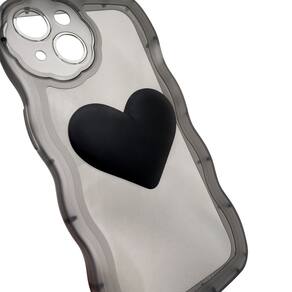 Capa preta ergonômica para 13 com bordas curvilíneas de textura macia com corrente pendente de coração que dá um toque único e versátil à sua capa de cer de última geração, macia e à prova de choque
