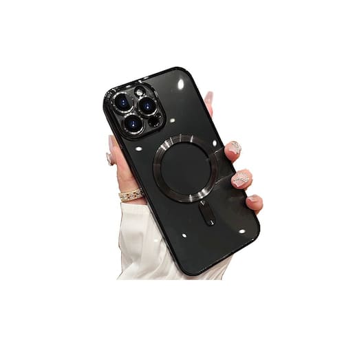 Capa para celular com tecnologia MagSafe, proteção para lentes da câmera, moldura de silicone com acabamento em platina, altamente transparente.Características