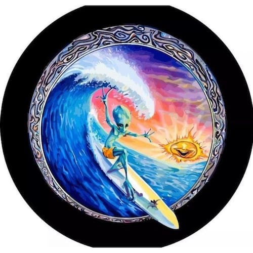 Nossas Capas para estepe são fabricadas com dois materiais de primeira qualidade, ambos de características anti mofo e impermeável, muito resistentes à intempérie: Vinil 440g com proteção UV na parte central, que além da durabilidade, apresenta alta qualidade na impressão das estampas e nylon 600 na faixa da banda de rodagem do pneu estepe.