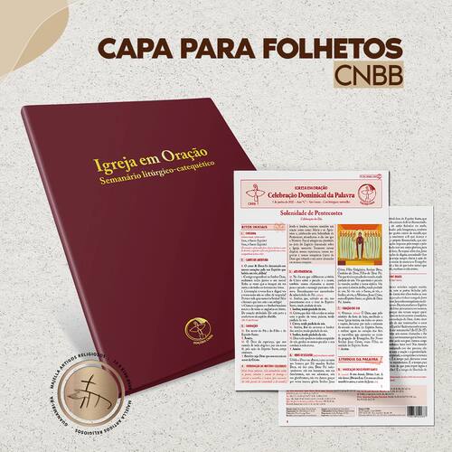 Capa litúrgica do folheto Igreja em Oração: além de proteger seus exemplares, elas os deixarão com a aparência da exclusiva Bíblia Sagrada com Tradução Oficial da CNBB, visto que foram desenvolvidas com a mesma identidade visual. São produzidas em capa dura, revestida em plástico PVC e impressa com letras douradas.Peso:,229Páginas: Formato:22 X 29,5cmAcabamentos: Papelão com revestimento em PVC