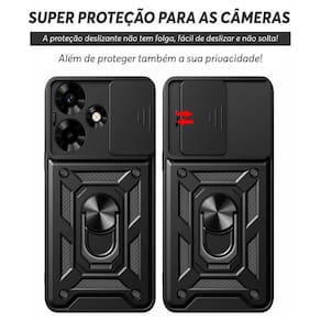 Com design moderno e cor preta, a capa possui um ótimo acabamento com alto relevo na parte que protege a câmera, garantindo a integridade do seu dispositivo. Além disso, ela conta com proteção anti impacto de dupla camada, oferecendo uma dupla resistência contra danos.