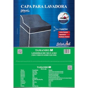 Tamanho universal se ajusta perfeitamente à maioria dos modelos no mercado. Ela se adapta a lavadoras de diferentes tamanhos e formatos, garantindo um encaixe seguro e proteção completa, verificar tabelas de medidas.