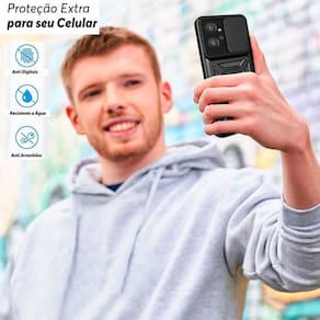 Uma vantagem adicional é o slide cover, que oferece maior proteção para as câmeras do seu Moto G32. Além disso, ele proporciona maior privacidade, pois pode ser deslizado para cobrir as lentes quando não estiverem em uso.