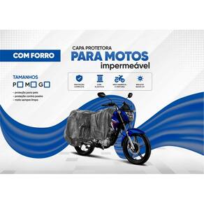 BENEFÍCIOS INCRÍVEIS: TOTALMENTE IMPERMEÁVEL: Chuva? Nunca mais molhando sua moto! PROTEÇÃO UV: Evita desbotamento da pintura e danos causados pelo sol. CONTRA POEIRA E POLUIÇÃO: Sua moto sempre limpa e pronta para rodar. NÃO RISCA A PINTURA: Material interno suave para proteger o verniz. ELÁSTICO NA BASE: Ajuste perfeito, não voa com o vento! PROTEÇÃO PETS: Mantenha os animais longe do banco e da pintura Ean: 7437341234130