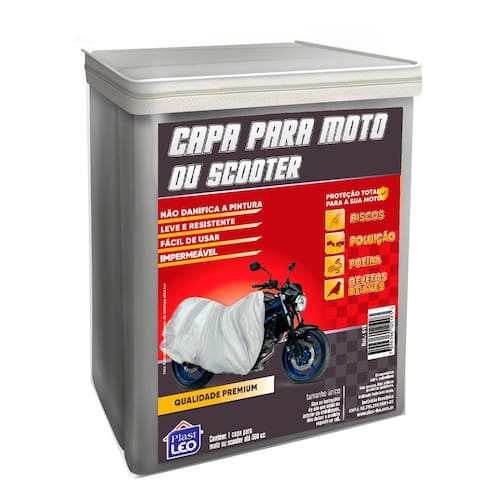 Todo o cuidado que a sua moto merece! Se você simplesmente ama a sua moto e não gosta nem de imaginá-la exposta à poeira. arranhões. raios solares e chuva. é melhor protegê-la com esta capa. Feita em polietileno. possui elástico que proporciona mais firmeza e não a deixa sair. mesmo com vento forte.