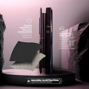 Capa carteira dual para Samsung Galaxy S24, oferece espaço para cartões e dinheiro, proteção contra arranhões e quedas, estrutura durável, bordas elevadas para proteção da tela e câmera, recortes precisos para acesso a portas e botões.Características