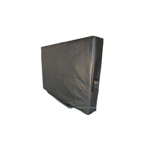 Capa para TV em material sintético fechada atrás e bolsos laterais para acomodar o controle remoto. Proteja sua tela com elegância e estilo