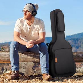 O interior da capa é projetado para máxima proteção com um acolchoamento de espuma de alta densidade de 1,8 cm e com forro macio e tecido resistente a arranhões. Os dois bolsos externos com zíper permitem que você mantenha todos os seus acessórios organizados, desde suportes dobráveis, capotrastes, palhetas e cordas, até cabos e dispositivos eletrônicos como tablet e smartphone.