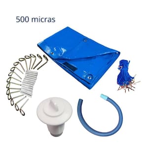 Especificações: Capa de proteção para piscina 500 micras - kp1000 A capa de proteção para piscina proporciona segurança para as crianças e animais domésticos, além de manter a piscina mais limpa livre de folhas, galhos, poeiras,insetos e outras impurezas. Outra grande vantagem é a economia com os produtos químicos, pois com a piscina coberta terá menos evaporação do produto. Acompanha dreno que fica na parte central que deve ser conectado a mangueira para que escorra toda a água da chuva que fica acumulada na superfície. Sua instalação é feita ao redor da piscina através de ganchos, cordas ou cintas, por tanto o ideal para confecção é acrescentar 0,50cm de cada lado, por exemplo uma piscina de 8 x 4 o ideal seria uma capa de 9 x 5, fazemos as capas em todos os formatos e tamanhos. Cuidados na limpeza: Lavar com sabão ou detergente neutro,não utilizar produtos abrasivos ou a base de solventes químicos.