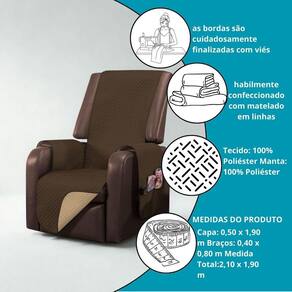 Capa Poltrona 1 Lugar Reversível Manu Matelada Variação: Cáqui e Marrom Seja muito bem-vindo a à Atual Ecommerce, loja com mais de 4 anos de confiança nos marketplaces Apresentamos a Capa Protetora de Poltrona 1 Lugar Manu Matelado Dupla Face - o equilíbrio perfeito entre estilo, conforto e funcionalidade. Se você está cansado de ver sua poltrona manchada, desbotada ou fora do tom da sua decoração, essa é a solução ideal. Com um toque de elegância e dois visuais em uma só peça, o modelo Manu vai transformar seu ambiente sem esforço. Clientes recomendam: uso dos dois lados e parece que tenho duas capas diferentes os bolsos são ótimos para deixar controle e livro sempre à mão. minha poltrona antiga parece nova, adorei o acabamento matelado. Especificações Técnicas: 1 capa de poltrona com bolsos Largura do assento: 0,50 m Medidas totais: 2,10 x 1,90 m Braços: 0,40 x 0,80 m costurados à capa Material: 100% Poliéster Composição: Tecido superior e inferior + manta Lavagem: Máquina modo delicado Estrutura matelada losangos Dupla face com cores distintas Bolsos laterais funcionais em um dos braços Acabamento reforçado com viés : 3 meses contra defeitos de fabricação. Compre com segurança e tranquilidade. Não perca Estoques limitados. Agradecemos sua visita em nossa loja. Boas compras Marca: Não Informado