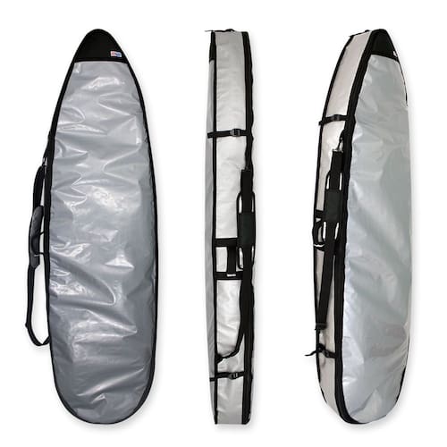 Capa Tripla Sarcófago Refletiva Maori Extreme Capa reforçada, desenvolvida para viagens curtas e longas, para transporte de 2 pranchas, incluindo acessórios, roupas de borracha e muito mais. Produzida com lona prata ultra resistente e com proteção contra raios solares, a capa sarcófago da MAORI EXTREME possui diferenciais exclusivos, que protegerão ainda mais suas pranchas e facilitarão seu diaadia durante a viagem. Espuma de 8mm nas tampas e laterias: Maior proteção contra impactos e pancadas indesejadas; Costuras triplas em nylon: garantia de vida longa a capa pois não sofre com ação do tempo, sal, maresia etc; 2 alças internas com fecho em nylon de fácil colocação, permitindo prender as pranchas dentro da capa, evitando que fiquem soltas e causando assim possíveis machucados; 6 alças externas para ajuste da capa às pranchas, fazendo com que a capa fique compactada e abrace as pranchas para que não fique batendo. 2 divisórias internas com espuma, permite colocar uma prancha em cima da outra, evitando o contato entre elas, protegendo ainda mais suas pranchas. Alça de ombro regulável e removível, além de alça de mão acolchoada. Sistema antifurto: 2 cursores no zíper para colocar cadeado ou similar Excelente produto, super leve, resistente e muito prático. Informações adicionais: Alça de ombro: acolchoada e removível; Alça de mão: Acolchoada Divisórias internas: Acolchoadas Sistema antifurto: Sim Proteção extra de espuma no bico: Sim Resistente ao sol e tempo: Sim Refletiva e proteção solar: Sim