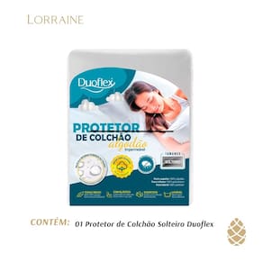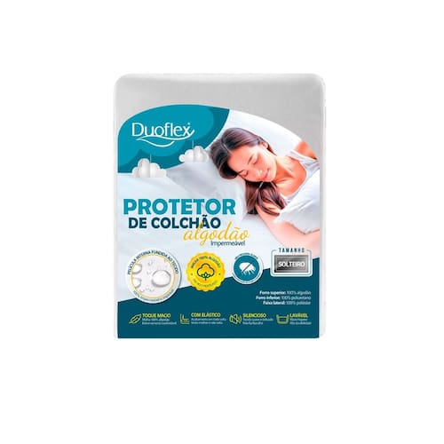 Descrição Desenvolvido com tecnologia de ponta, o Protetor de Colchões Duoflex oferece uma barreira eficaz contra líquidos e manchas, garantindo uma vida útil mais longa ao seu colchão e noites de sono tranquilas. Em malha 100% algodão impermeável, nosso protetor é silencioso e se adapta perfeitamente ao colchão, proporcionando um ajuste seguro e discreto.Este protetor de colchão possui exclusiva tecnologia que não emite barulhos ou sons após ser ajustado no colchão, proporcionando extremo conforto e tranquilidade para seu sono! O tecido do protetor une o tecido impermeável com a malha do revestimento, proporcionando uma proteção que não permite a passagem de líquidos para o colchão.Além disso, o protetor ainda possui acabamento lateral em elástico, que abraça o colchão deixando-o firme e sem deslizar.Experimente este novo conceito de protetores e sinta a diferença!Especificações do Protetor de Colchão:- Comprimento: 1,90 m- Largura: 90 m- Altura: 30 cm- Cor: Branco- Forro superior: 100% algodão- Forro inferior: 100% poliuretano- Faixa lateral: 100% poliester