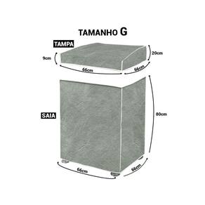 ESPECIFICAÇÕES: Material: Laminada de PVC e Poliéster Tamanho: G - Tampa: 0,66m (Largura) x 0,09m (A frente) x 0,20m (A trás) x 0,66m (Profundidade). - Saia: 0,66m (Largura) x 0,80m (Altura) x 0,66m (Profundidade). Peso: Aprox. 250g