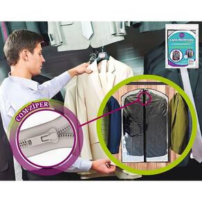 Capa protetora com zíper e material resistente, perfeita para proteger e conservar suas roupas! Mantenha suas roupas sempre protegidas!