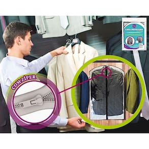 Capa protetora com zíper e material resistente, perfeita para proteger e conservar suas roupas! Mantenha suas roupas sempre protegidas!