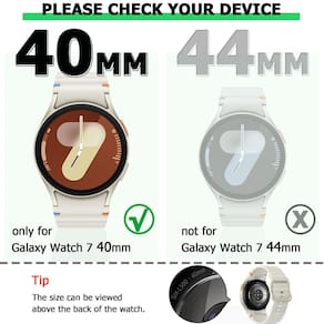 - ?Aplicação?Esta capa de relógio apenas para Samsung Galaxy Watch 7 40 mm (SM-L300). NOTA: Não serve para Samsung Galaxy Watch 7 Ultra de 47 mm, Samsung Galaxy Watch 6, 5 e 4 ou outros. O modelo e o tamanho podem ser vistos acima da parte traseira do relógio.