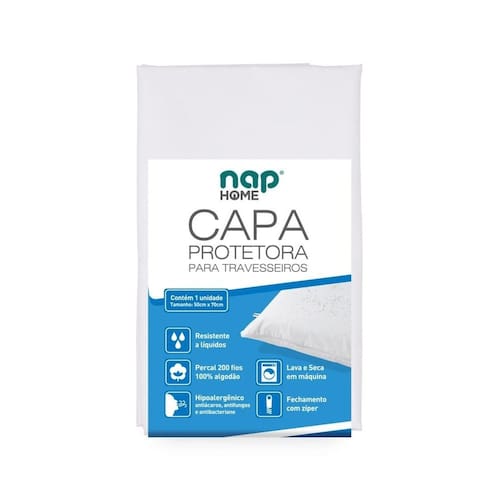 A Capa Protetora de TravesseiroNap Tem um tecido macio, composto em 100% algodão, com tratamento antialérgico e fácil de lavar, oferece conforto e proteção ao seu travesseiro, por ter um tratamento impermeável também aumenta a vida útil do produto.