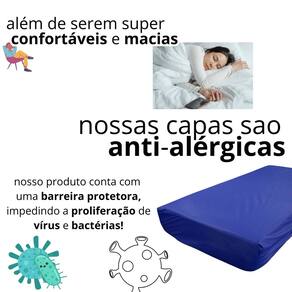 Protege contra ácaros, fungos, bactérias, alergias, contribuindo com seu bem estar e saúde (controlando os principais fatores alergênicos), principalmente em pessoa acamadas, com incontinência urinária, com problemas respiratórios, desfralde... e para ter um colchão de fácil limpeza, muito mais higiênico, bastando um pano úmido com detergente neutro, e terá sua capa limpa e seca, livre de complicações.