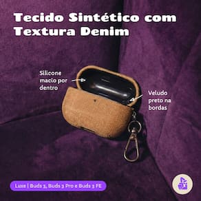 Não informadoA Capa Luxe Nerdcase foi criada para quem quer proteger seus fones com muita personalidade. Compatível com Samsung Galaxy Buds 3, Buds 3 Pro e Buds 3 FE, ela possui acabamento interno em silicone com as bordas aveludadas e externo couro sintético texturizado.