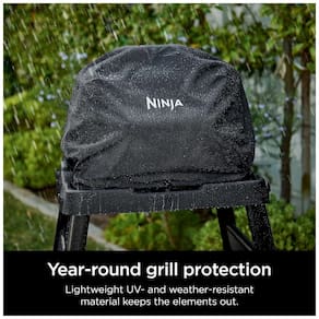 A capa Ninja Woodfire Premium XL foi desenvolvida para proteger churrasqueiras e defumadores elétricos da linha Ninja Woodfire séries OG800 e OG900 em áreas externas. O tecido sintético leve é resistente à água e aos raios UV, ajudando a preservar o equipamento contra sol, chuva, poeira e sujeira.