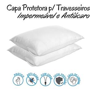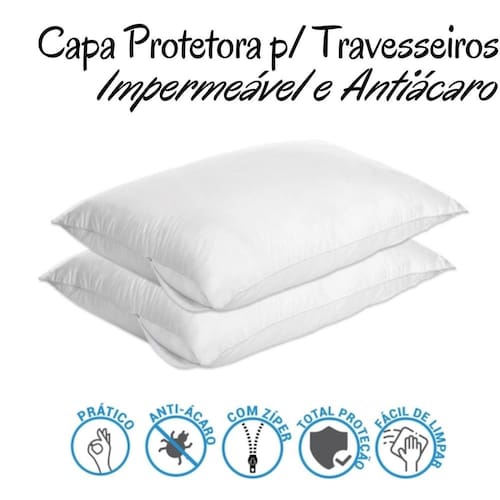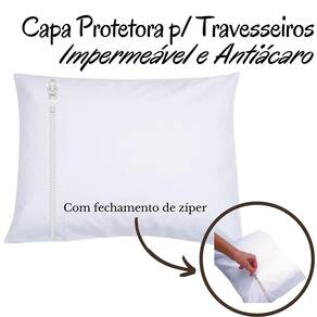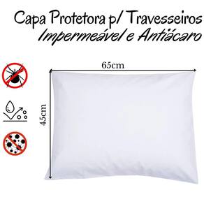 Capa Protetora para Travesseiro Impermeável e Antiácaro com Zíper Os especialistas explicam que os itens antiácaros impermeáveis são o que impede o contato dos ácaros e seus dejetos, protegendo os tecidos e que ficam na parte interna do travesseiro e colchão. Com isso impede a proliferação dos ácaros e evitando alergias. Tecido Macio Pratico Antiácaro Composição 100% polipropileno 100% Polietileno forro Medida: 65cm x 45cm