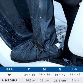 Possui o design perfeito para proteger seus sapatos da chuva não é necessário tirar o calçado para vestir, trabalhado em material resistente de pvc, possui uma excelente durabilidade garantindo que não molhe ou estrague o seu calçado, seu tamanho traz conforto ao calçar. Possui refletor sinalizador no calcanhar, além do seu solado em borracha antiderrapante que reforça a sua segurança e traz mais confiança.