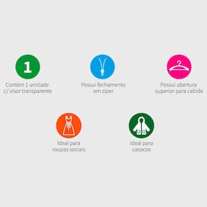 A Capa Protetora Vizapi Exclusive 150x55cm Branco Bege é ideal para quem busca por um produto de qualidade superior e maior durabilidade, com a finalidade aumentar o nível de proteção das roupas mais valiosas e delicadas do seu armário, com abertura na parte superior, a capa permite o uso de cabide, possui visor transparente que facilita a identificação e fechamento em zíper para facilitar a armazenagem e o transporte. Cabide adquirido separadamente. Ideal para roupas sociais, casacos, vestidos, macacão, casaco 7/8, trench coat, sobretudo, manteau e etc.